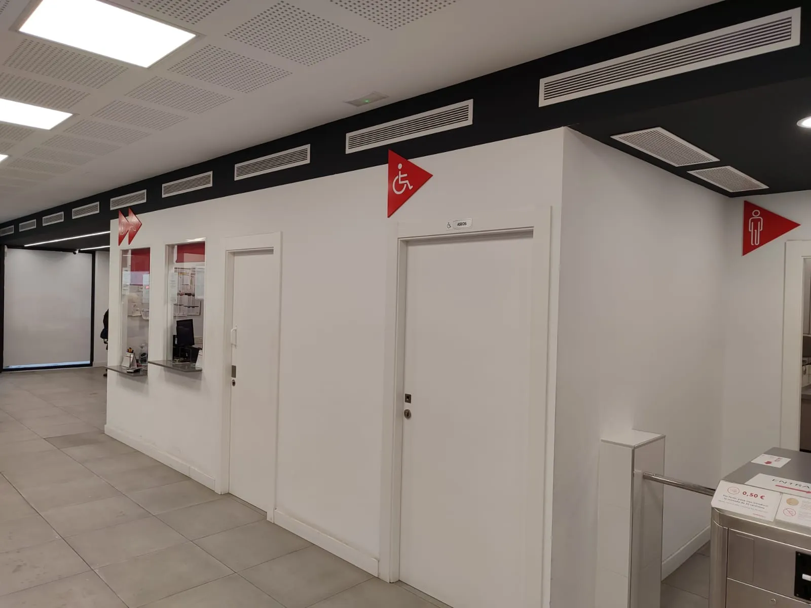 El diseño interior priorizó la orientación intuitiva y la accesibilidad, con iconografía clara y mensajes directos en relieve. Cada elemento fue instalado con precisión para mantener uniformidad visual en todo el espacio.