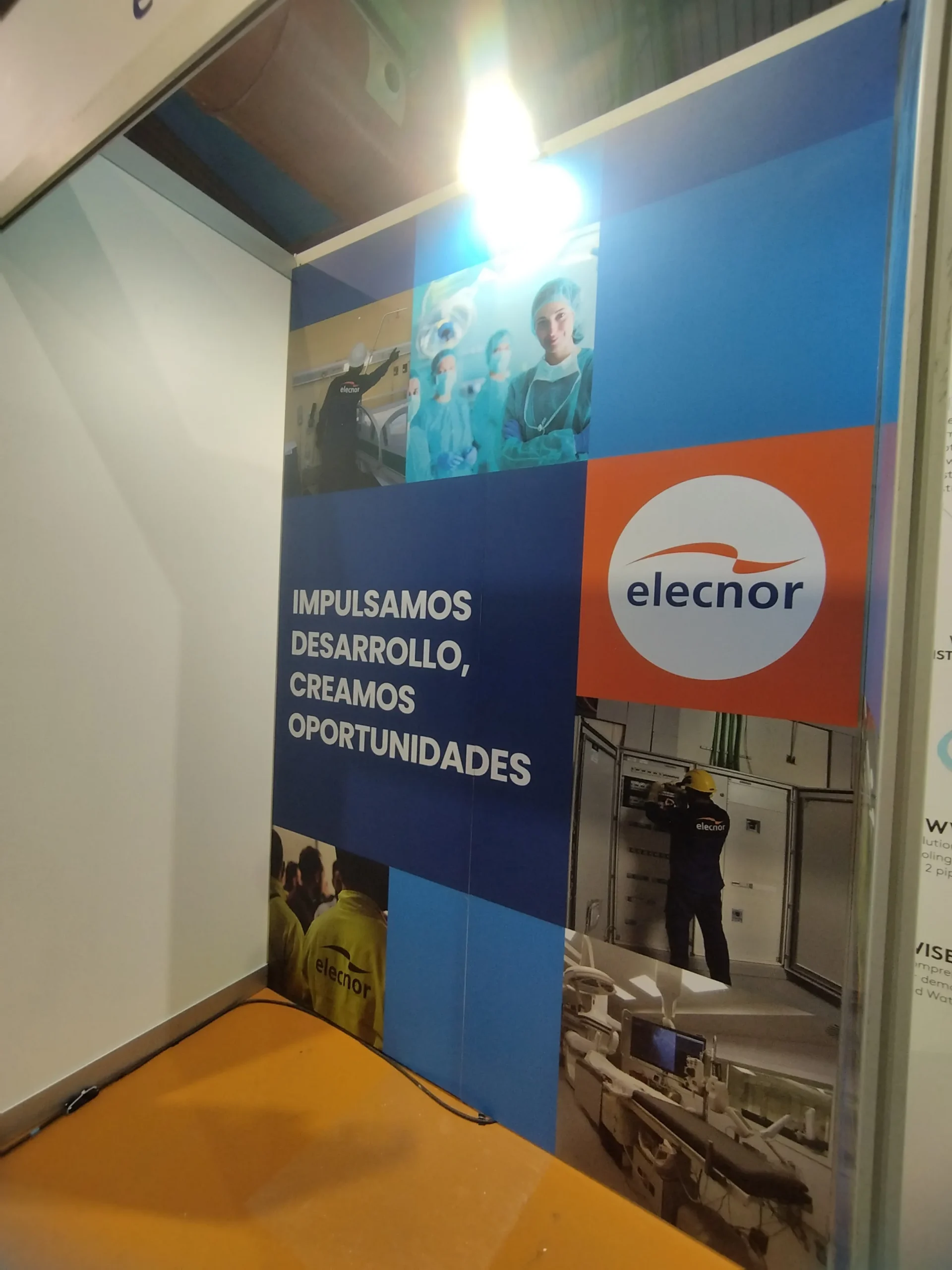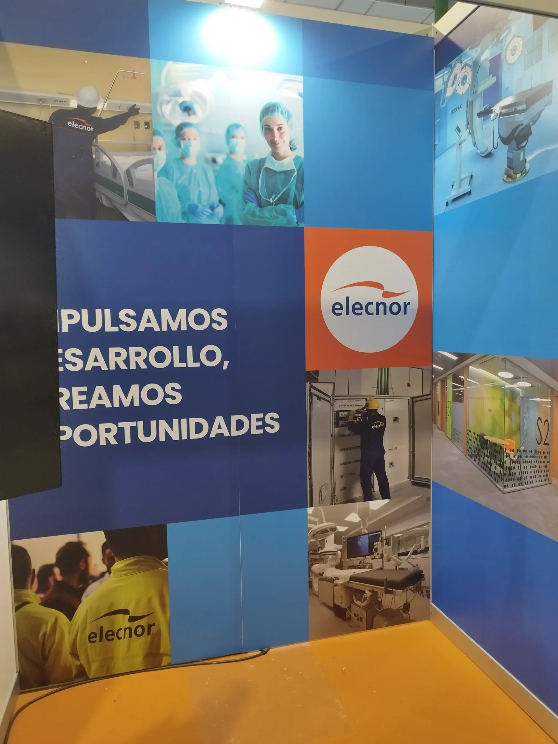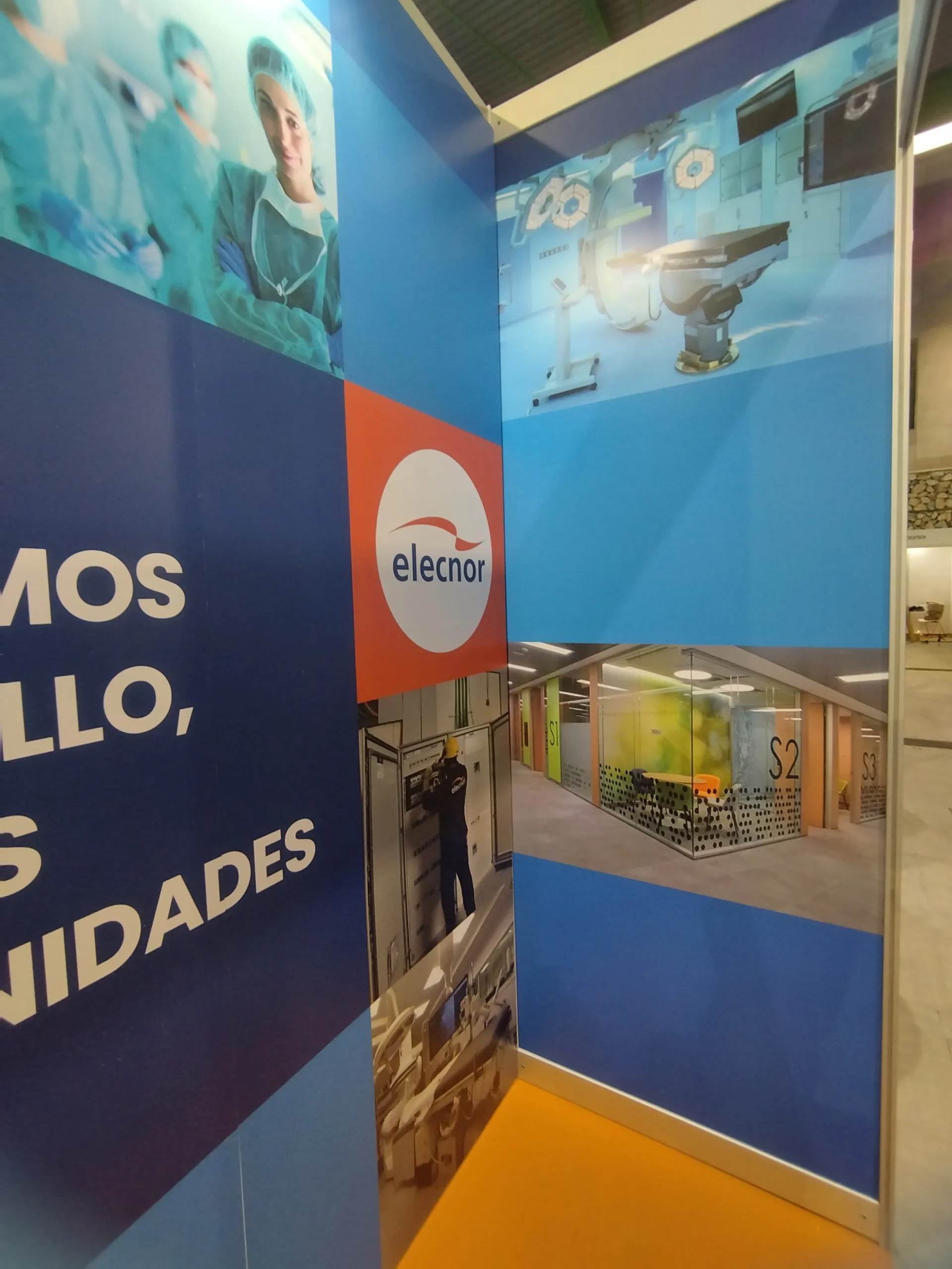 Indagrafic desarrolló para Elecnor la producción integral del stand corporativo destinado a su participación en feria profesional, con el objetivo de reforzar la identidad visual de la marca y transmitir sus principales líneas de actividad en entornos industriales y sanitarios.
