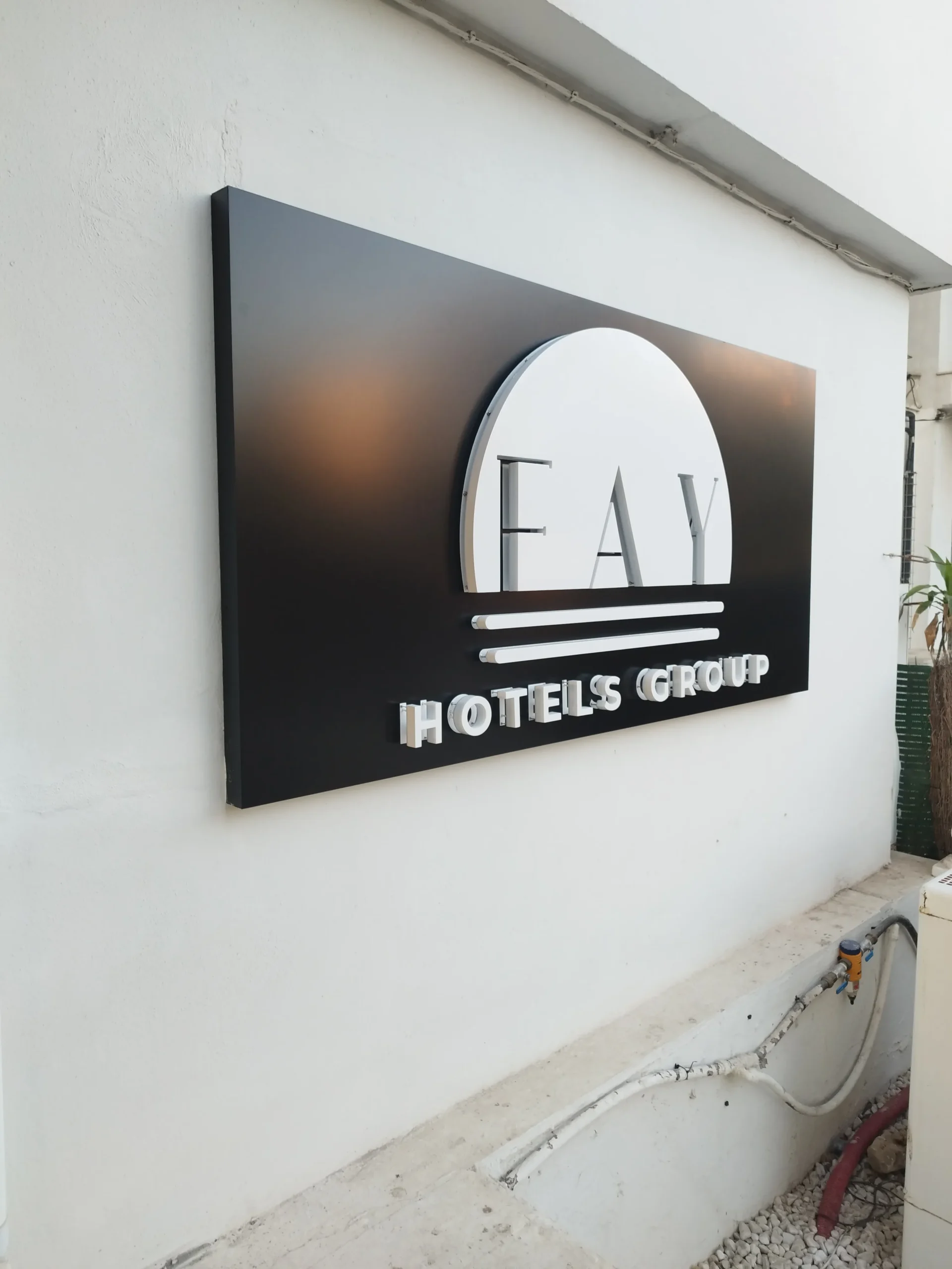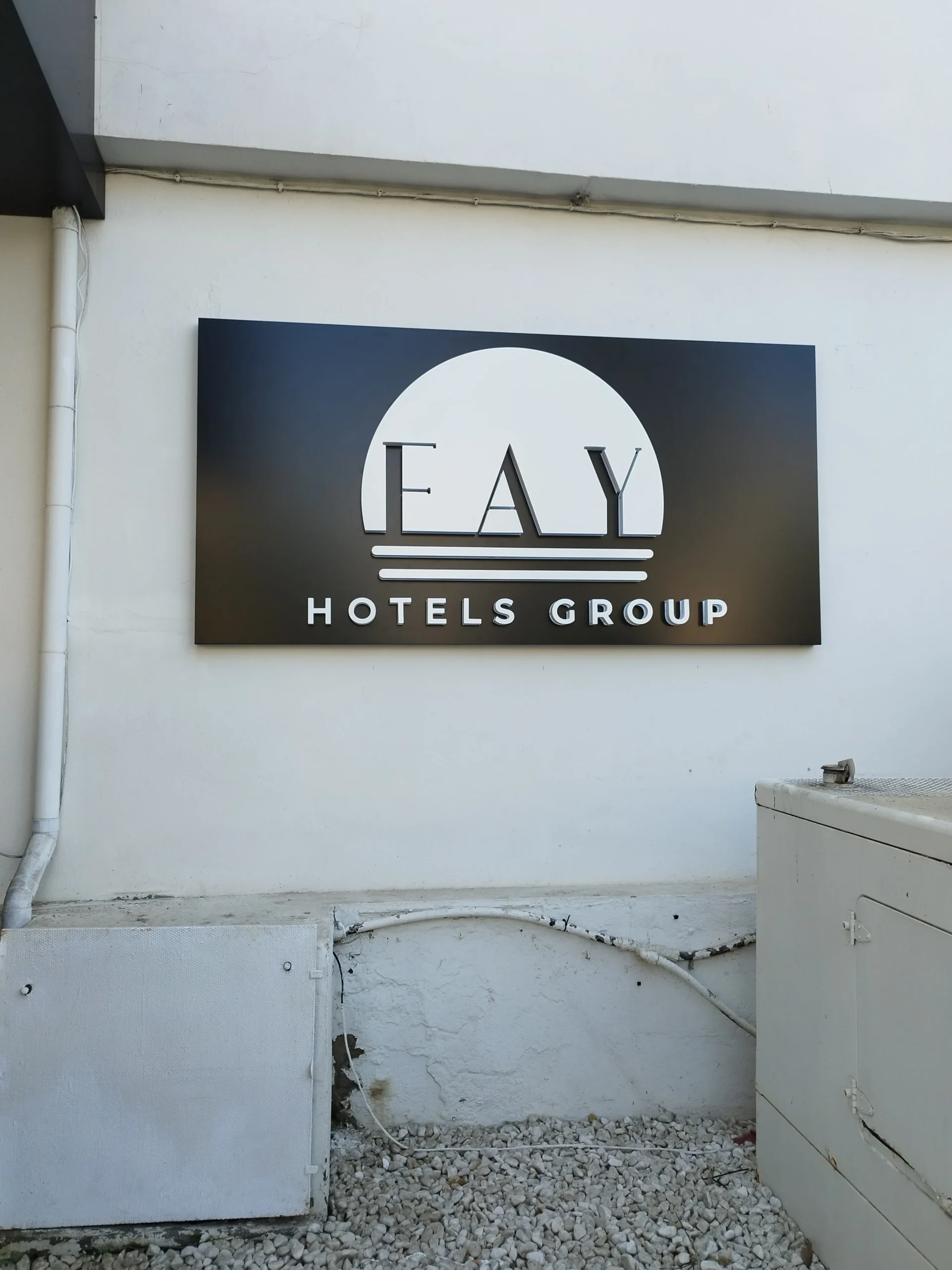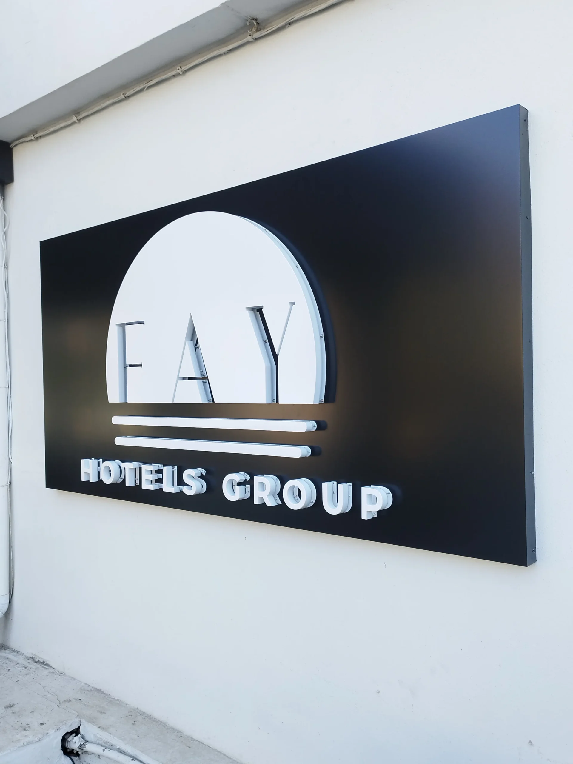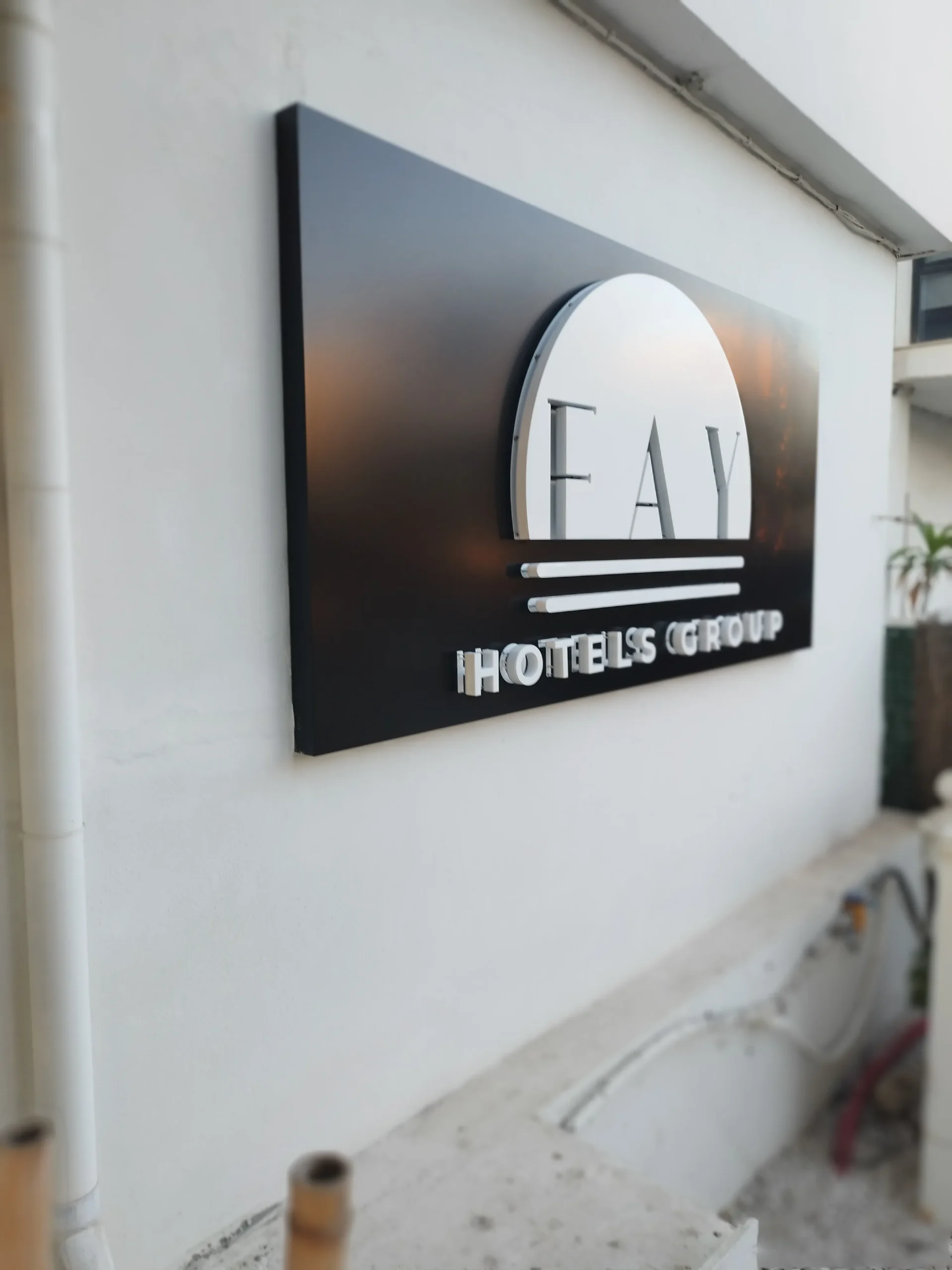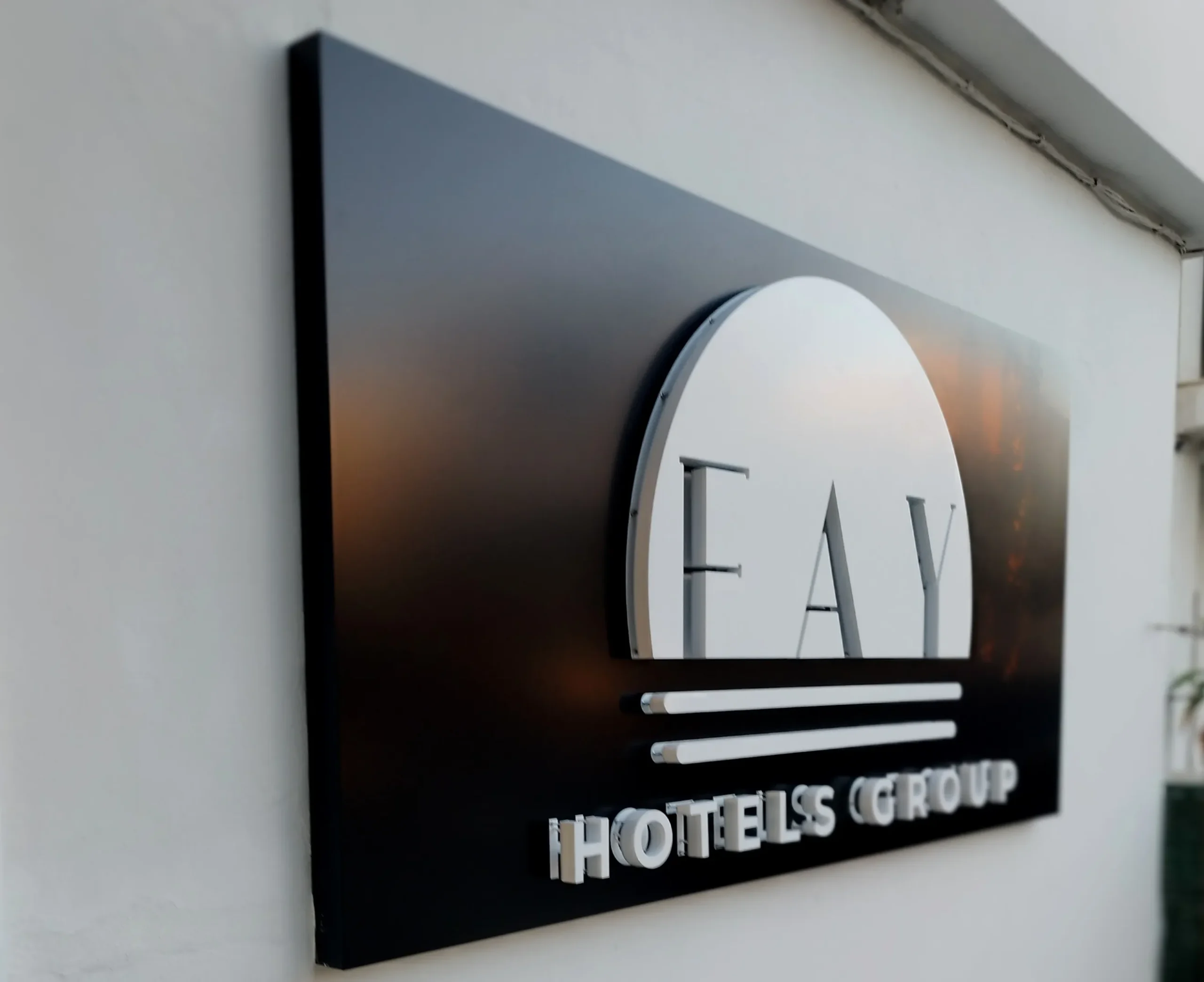 FAY Hotels Group: Rótulo corporativo en relieve para fachada principal.