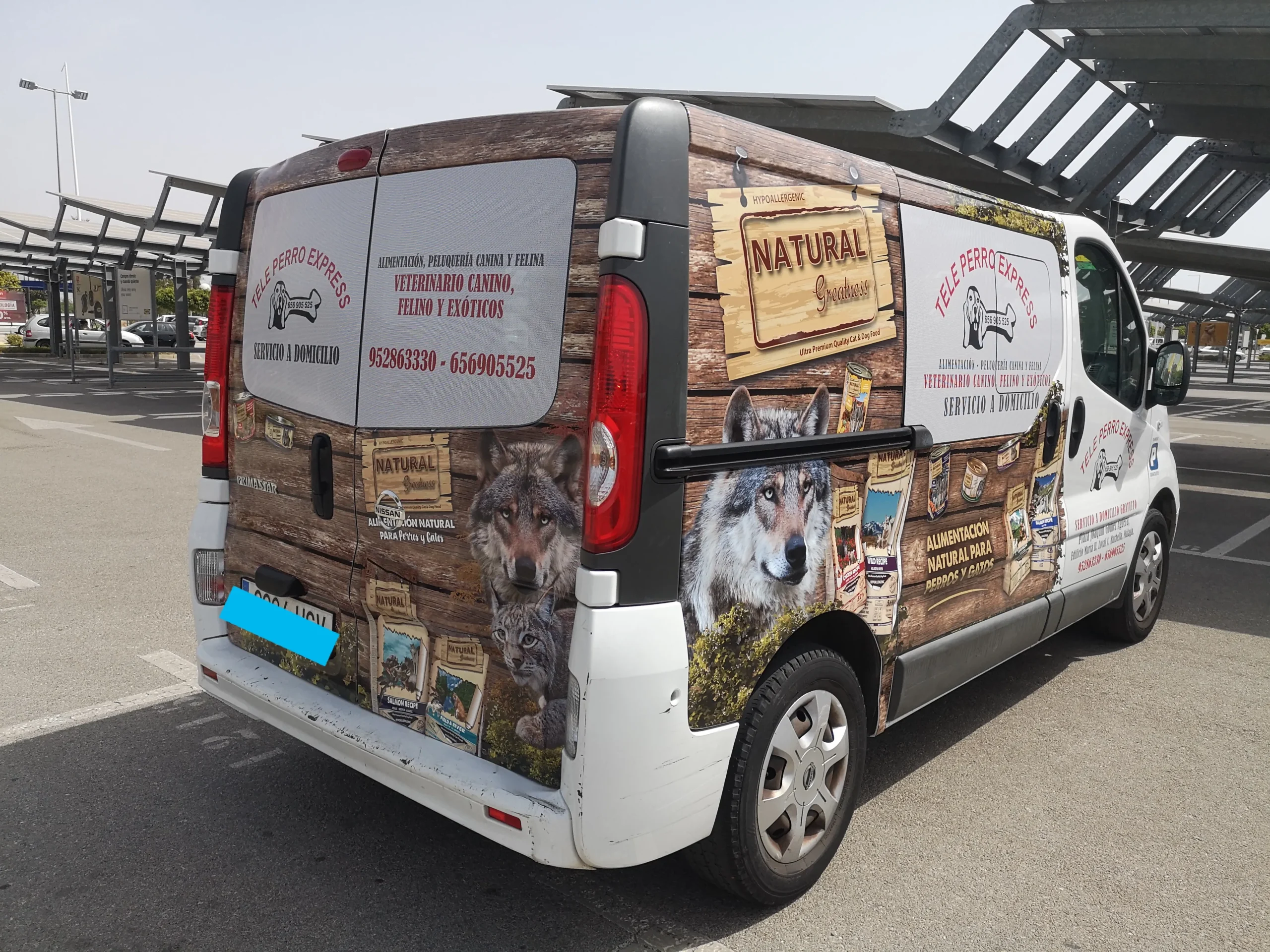 El resultado final refuerza la identidad visual de Natural Gourmet y Tele Perro Express, convirtiendo el vehículo en un soporte publicitario móvil de alto impacto. La rotulación transmite confianza, profesionalidad y coherencia con los valores de alimentación natural y bienestar animal.