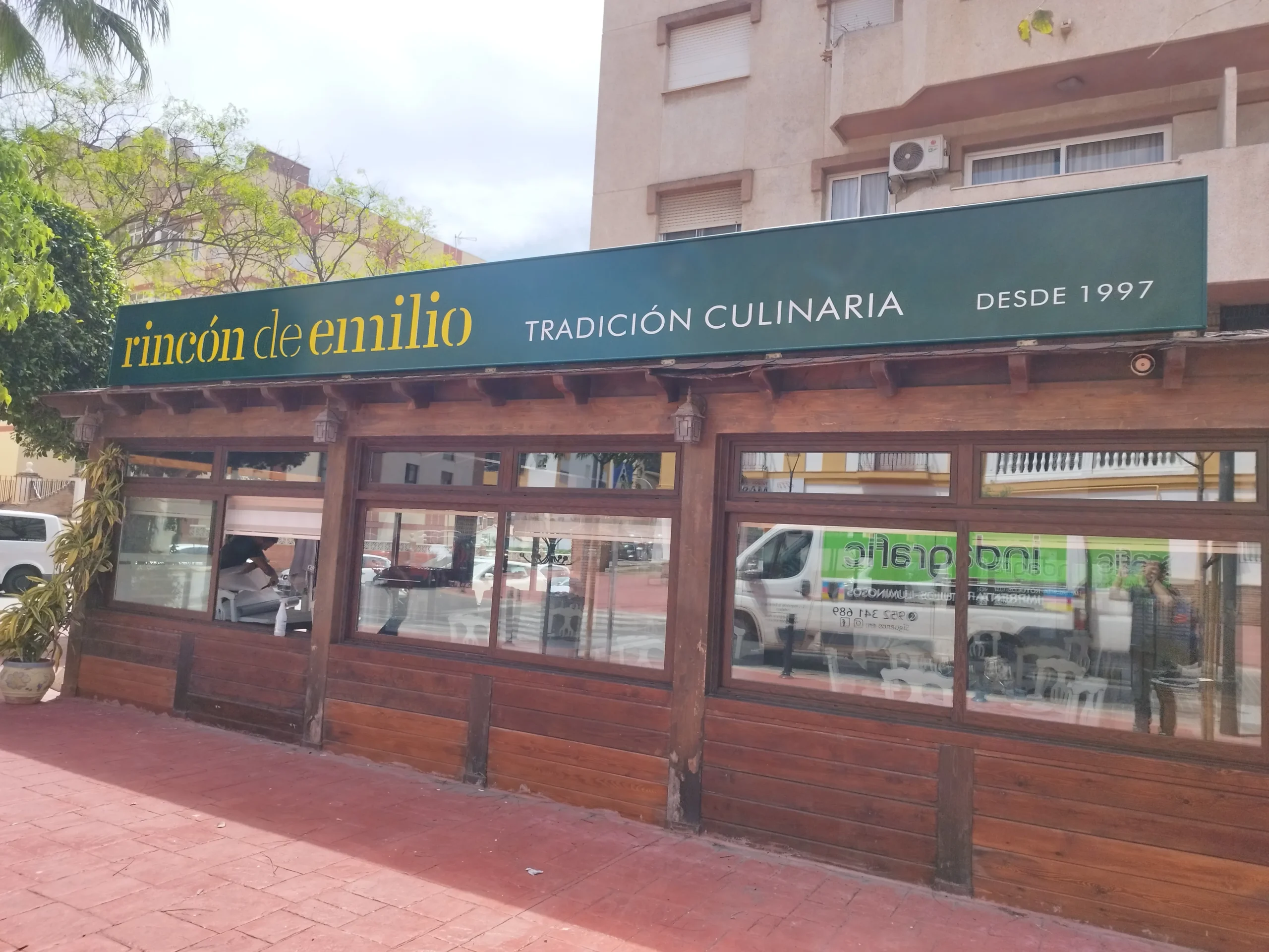 El Restaurante Rincón de Emilio, referente gastronómico en Málaga desde 1997, confió en Indagrafic para actualizar la imagen de su fachada manteniendo su esencia tradicional. El objetivo fue modernizar la identidad visual del local con una presencia elegante, legible y coherente con su posicionamiento como restaurante de cocina clásica y cuidada.
